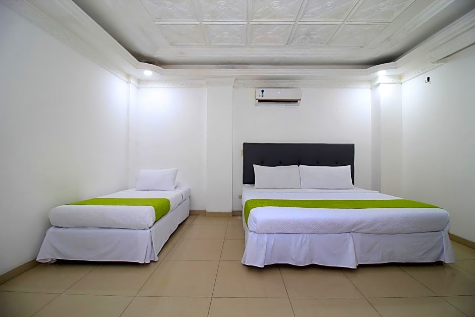 The hotel has Quadruple Rooms, Triple Rooms, Standard Double Rooms, and Family Rooms. Smoking is not allowed in any of the rooms. The Quadruple Room and Family Room have the largest room sizes at 377 sqft and 431 sqft, respectively. The Quadruple Room and Family Room can accommodate the most guests, with the Quadruple Room accommodating 4 adults and 1 child, and the Family Room accommodating 5 adults and 1 child. Both the Triple Room and Family Room have a combination of Twin and Double beds, while the Standard Double Room has a single Double bed.
