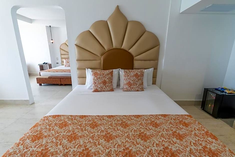 At Hotel Cartagena Dubai, the standard rooms are double occupancy with a queen size bed, no smoking allowed, and a size of 215 sqft. The master suite ocean view is also double occupancy with a king and queen size bed, no smoking allowed, and a size of 592 sqft. The superior ocean view room is also for double occupancy with a king size bed, no smoking allowed, and a size of 323 sqft. There is also a standard twin room for 3 adults and 2 children with a twin and queen size bed, no smoking allowed, and a size of 215 sqft. The hotels junior suite ocean view is for double occupancy with a twin, king, and sofa bed, no smoking allowed, and a size of 484 sqft. Finally, there is a superior twin room for 3 adults and 3 children with a twin and king size bed, no smoking allowed, and a size of 323 sqft.