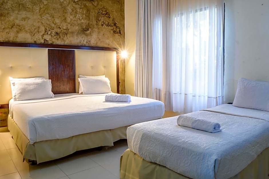 The Hotel Virrey Cartagena offers a variety of room types including Standard Double rooms, Standard Triple rooms, Standard Twin rooms, and Standard Queen rooms with two Queen beds. All rooms are non-smoking and have different bed sizes. The rooms can accommodate 2 adults in the Double and Twin rooms, while the Triple room can accommodate 3 adults, and the Queen room can accommodate 4 adults. The sizes of the rooms range from 183 sqft to 301 sqft.