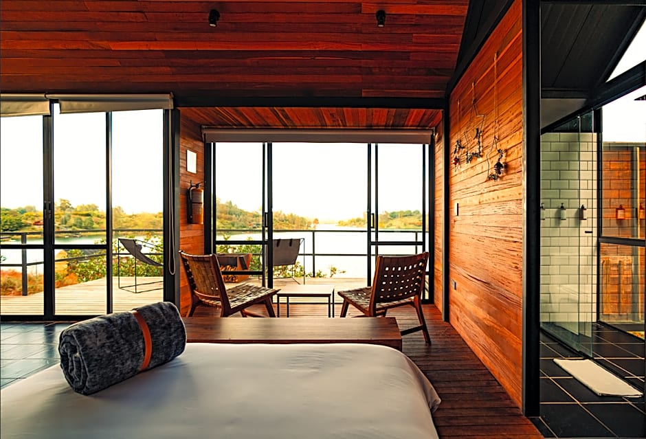 This is one of the most luxurious places I've ever stayed. Our cabin (Lar 1) was at the top of the hill with a view of the lake. We enjoyed the complimentary evening fires and the private outdoor jacuzzi. It was so nice to sit out on the deck and admire the view. Our room was spacious and comfortable with a mini kitchen and plenty of seating. The bed was an absolute dream, and we slept incredibly well. Down at the dock, we were able to bathe in the sun and use the complimentary stand up paddle board. All of the food at the restaurant was delicious, and we enjoyed having breakfast included in our stay. On top of this, the staff was incredibly nice and friendly.