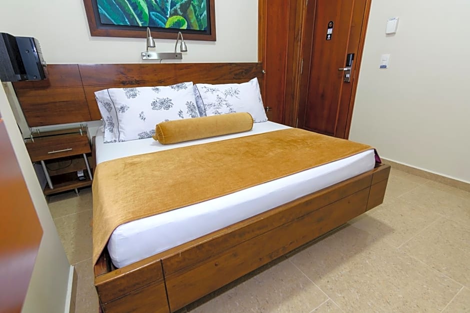 Everything was spotless clean and we felt safe and all our iisues were solved very easily. Room cleaning was done every day. There is a restaurant on site that is open all day long. Across the street there is a D1 supermarket and 400 m away there is a commercial and financial centre called Exito. The area was safe and green.
