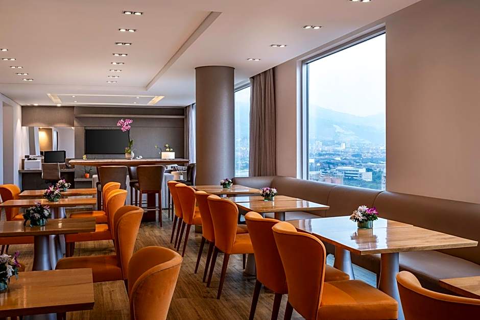 The Medellin Marriott Hotel offers two on-site restaurants. The Market features a family-friendly and modern ambiance, serving a variety of local, international, and Latin American cuisines. Additionally, NAU provides a modern and romantic setting, specializing in Japanese, sushi, and Asian cuisines.