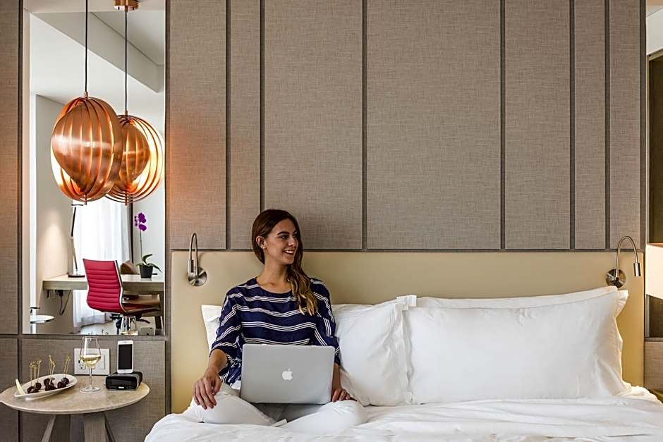 The hotel offers Double Rooms with two double beds, both at Concierge Level and Deluxe, accommodating 2 adults and 1 child. Additionally, there are King Rooms, also available at Concierge Level, and Deluxe King Rooms, with all rooms being non-smoking and accommodating 2 adults and 1 child. The room sizes range from 312 sqft to 344 sqft.