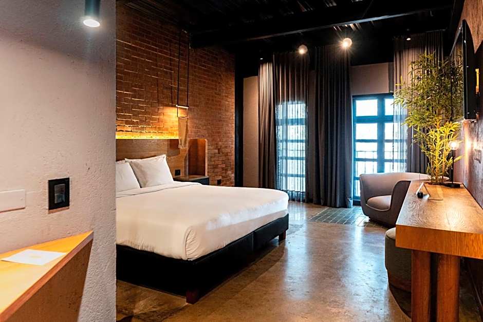 SUPERIOR ROOM The superior room of Art Hotel Boutique Medellín is the choice of travelers with an urban spirit who want more comfort. Our room, which has between 23 and 105 ft² of surface, can have a view of the rear façade, an interior view of the gardens or the main street according to availability, as well as a complete equipment that includes natural light, safe, mini-bar, air conditioning, LCD TV, telephone, bathroom with shower, Wi-Fi at no additional cost and desk with chair, among other services.