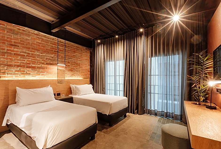 With between 23 of surface, the standard room of Art Hotel Boutique Medellín has an unbeatable value for money. In this room we offer an interior view of the hotel gardens and the rear façade according to availability, as well as two single beds, safety box, mini-bar, air conditioning, LCD TV, telephone, bathroom with shower, wifi at no additional cost.