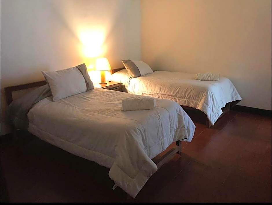 This twin room has private bathroom facilities and hot water.
