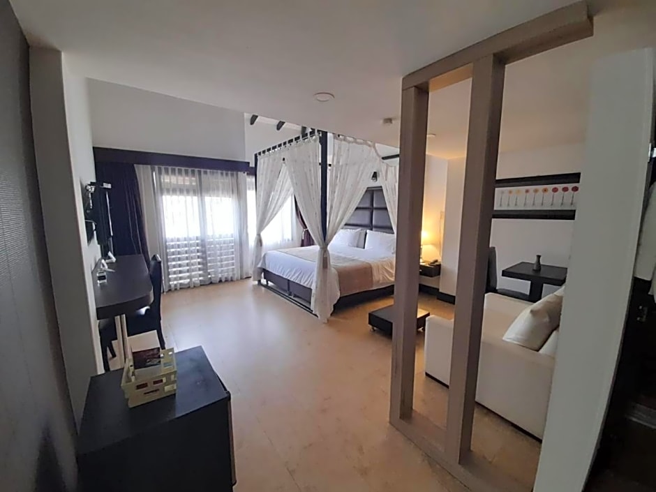 This suite is consisted of of 1 living room, 1 separate bedroom and 1 bathroom with a shower and free toiletries. This suite features a mini-bar, a seating area, flat-screen TV with cable channels, as well as wine/champagne for guests. The unit offers 1 bed.