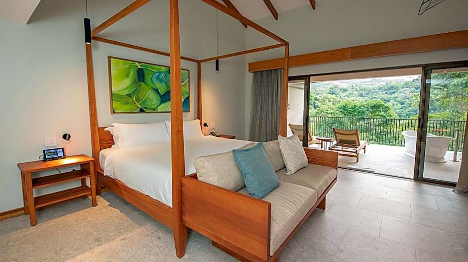 This spacious air-conditioned room features colorful décor inspired by the tropical rainforest surrounding the property. It has 2 queen-size beds, cable TV, high-speed WiFi and a private bathroom with bathrobes and shower with natural light. A seating area with a 42' flat-screen TV is also available.