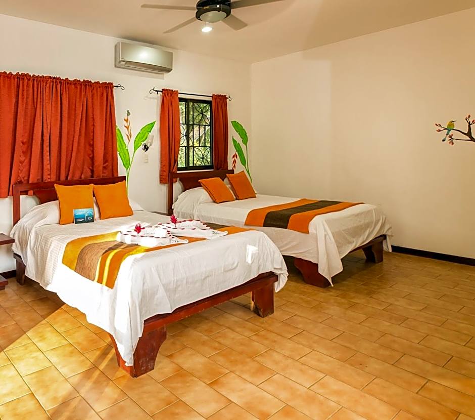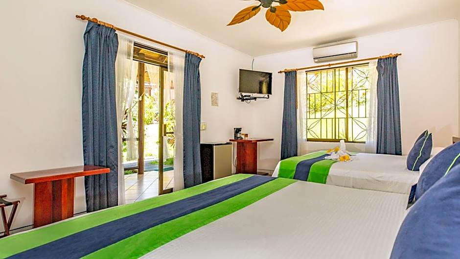The Junior Suite features two king size beds, air conditioning, fan ceiling systems, a coffee maker, safe deposit box, and free Wi-Fi.