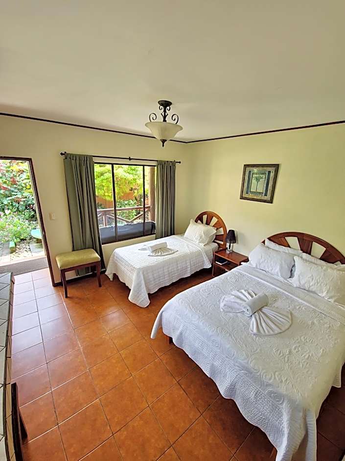 This room is located close to the pool and features 1 double bed and 1 single bed. It offers air conditioning, safety deposit box, cable TV, and telephone line, plus a fridge and coffee maker. The bathroom comes with shower and a hairdryer.