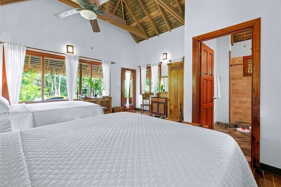 For those seeking tranquility and a touch of luxury, the adults-only saltwater infinity pool offers breathtaking views and a serene environment. Bask in the warm Costa Rican sun as you relax at the shallow end of the pool or unwind with a good book on the poolside loungers. With free access for guests and the stunning backdrop of Drake Bay, this is your go-to oasis for unwinding in style, whether you're soaking up the scenery or simply taking a refreshing dip.