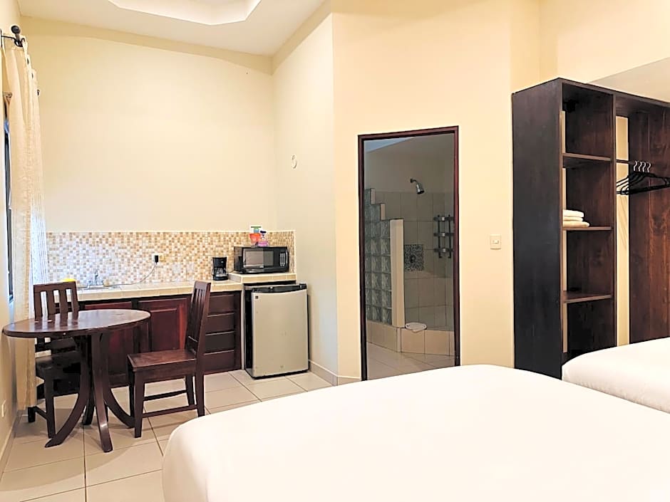 This air-conditioned junior suite offers pool views, free WiFi, cable TV and a private bathroom with a shower and free toiletries. The room has a queen-sized bed and a double bed, a dining area with a microwave and fridge. Daily maid service and free breakfast is included.