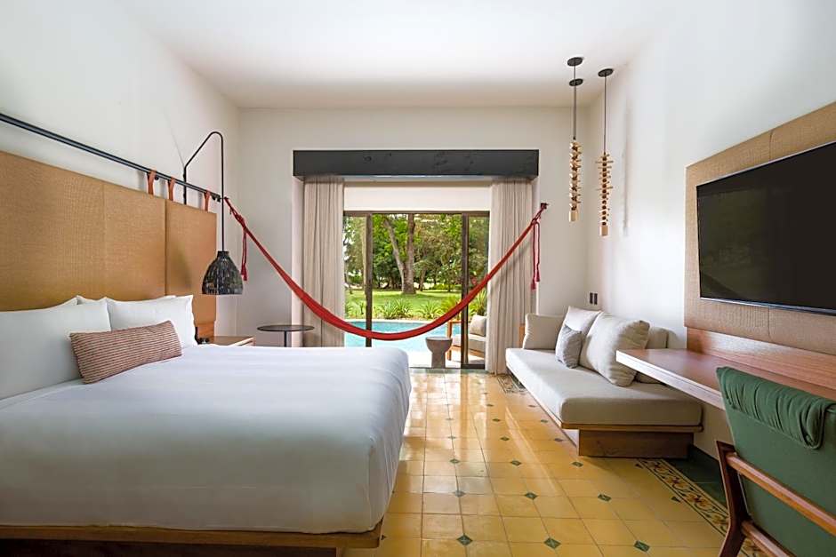 Swim Up room – Adults only, 1 king bed, pool terrace, access to adults- only pool, in-room hammock, day bed, wireless internet, luxury amenities, 46sqm/387sqft.