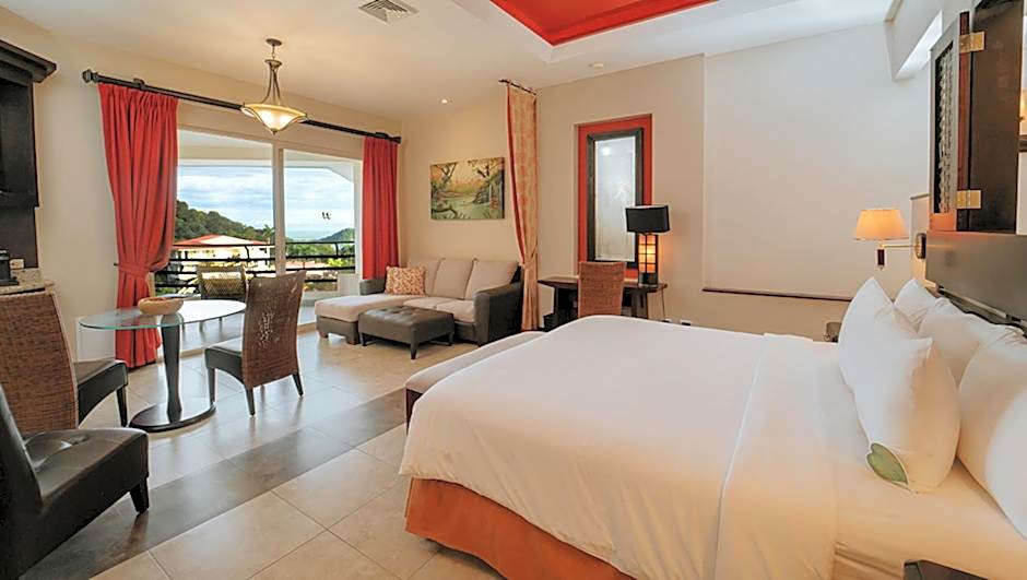 This spacious suite features a terrace with a hot tub and outstanding views of the rainforest and Pacific Ocean, Decorated with exclusive paintings by local artist Victor Chavarra, the living area comes with a sofa bed, a flat-screen TV, iPod docking station and a coffee maker. The bathroom features 2 granite sinks, bathrobes, exclusive free toiletries and a separate bathtub and shower.