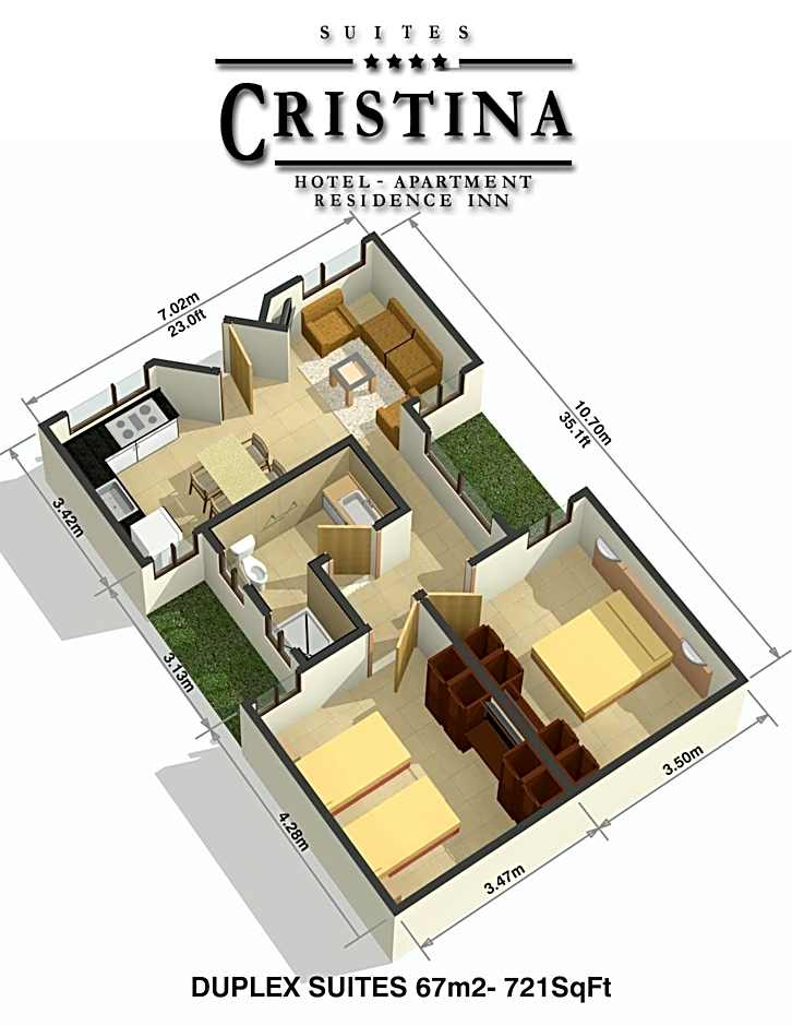 Overall, Hotel Residence Inn Suites Cristina offers a range of amenities for guests to enjoy and make the most of their stay, whether it is relaxing by the pool, staying fit, or savoring mouthwatering meals.