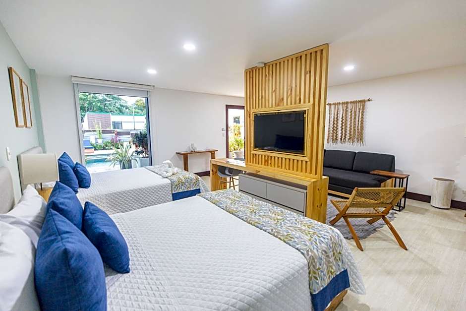 Featuring free toiletries, this studio includes a private bathroom with a shower and a hairdryer. The spacious air-conditioned studio features a flat-screen TV with streaming services, a private entrance, a mini-bar, a coffee machine as well as pool views. The unit has 4 beds.