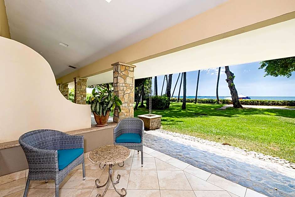 Distributed in three different stories, this beachfront room offers ocean views. It has attractive décor, a seating area, mini-bar and a flat-screen TV. The in-room amenities include air conditioning, and a terrace overlooking the tropical gardens.