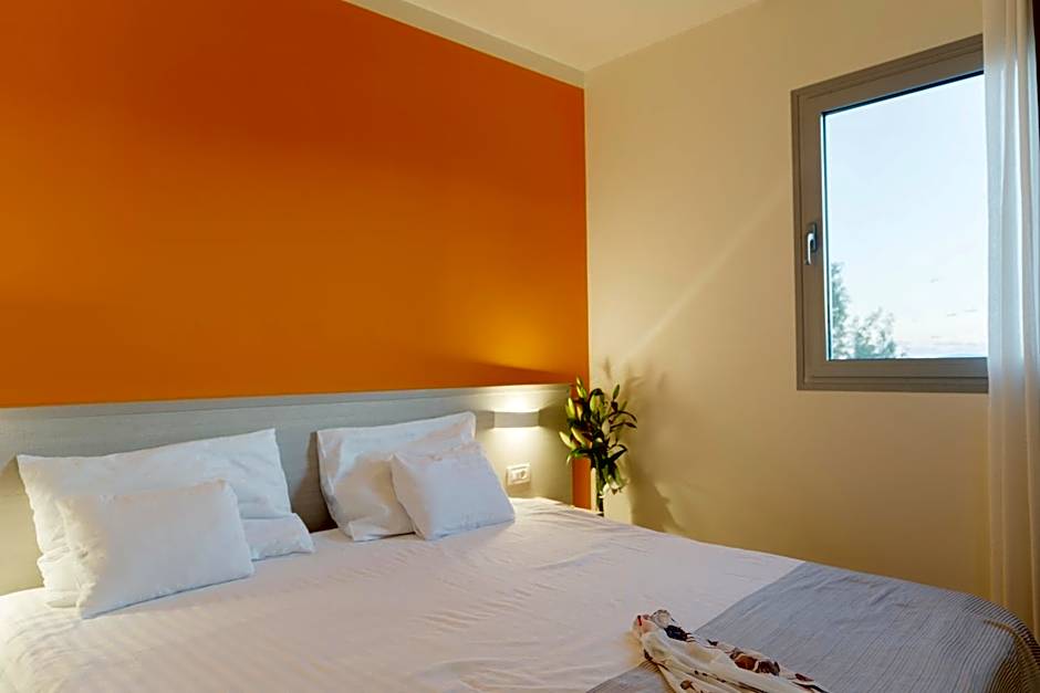 The spacious double room offers air conditioning, a seating area, a terrace with sea views as well as a private bathroom featuring a walk-in shower. The unit offers 2 beds.