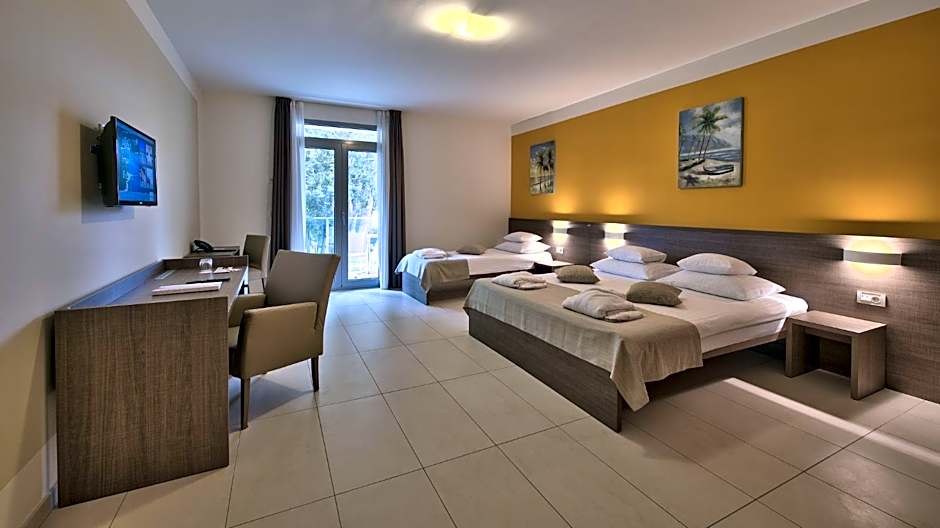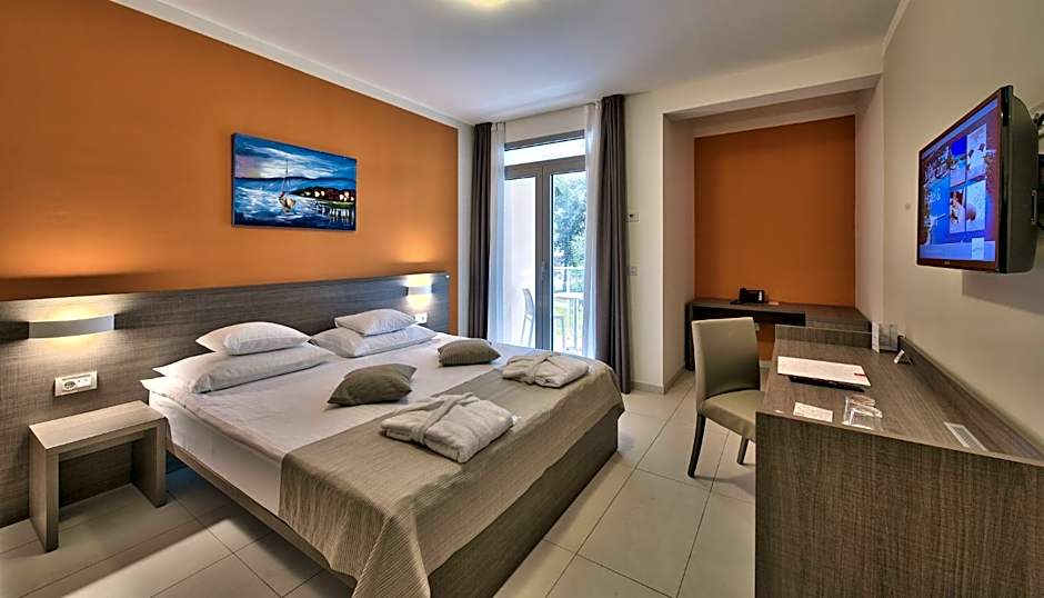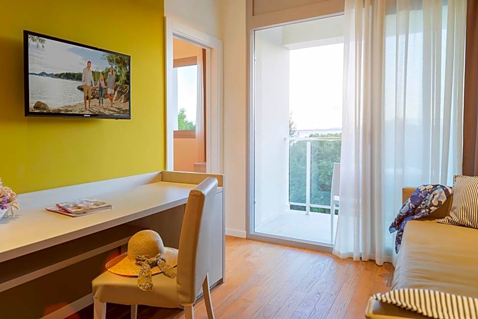 On the Biograd na Moru coast, the resort offers a private beach area and two adult-only pools: an outdoor infinity pool with sea views and a heated indoor pool. A spa with wellness packages invites relaxation, and a kids' club keeps younger guests entertained, all adding up to a carefree coastal escape.