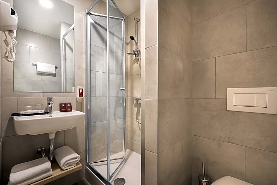 COMFORT double/twin room with street view is 151 square feet and includes 2 single beds 80-130 width plus a sofa bed.