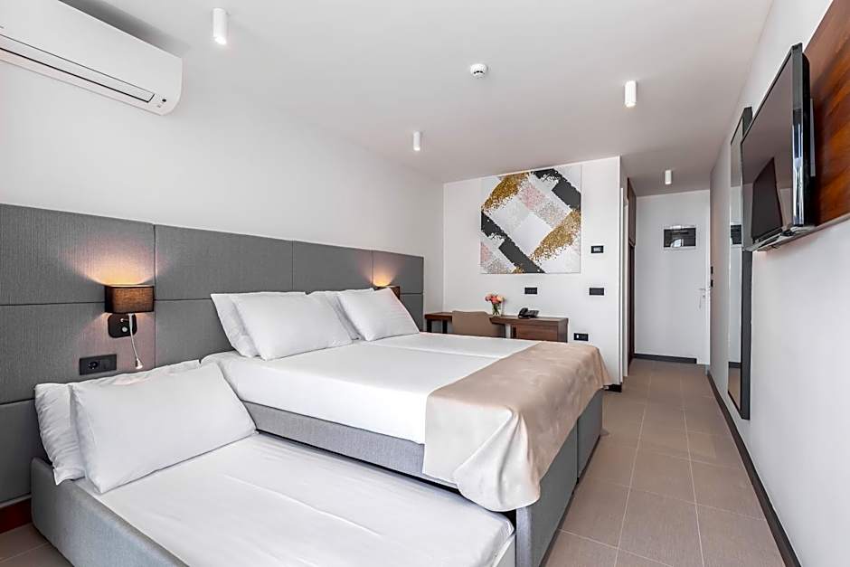 This air-conditioned twin room is consisted of of a flat-screen TV with satellite channels, a private bathroom as well as a balcony. The unit has 3 beds.