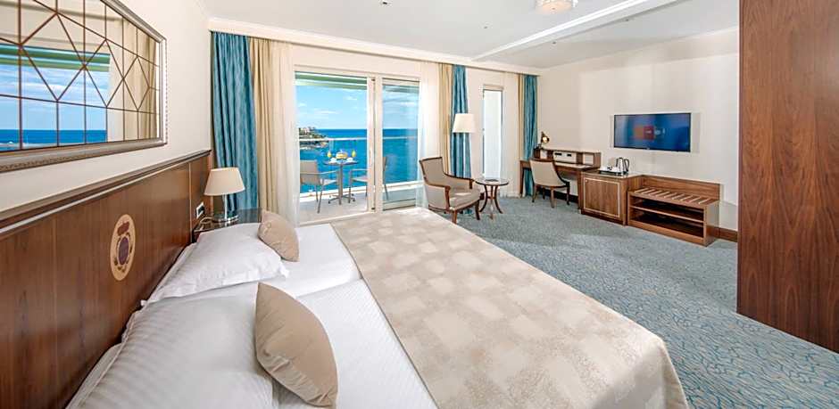 This suite has a seating area, sea view and mini-bar. Private jacuzzi on the terrace with views of the Adriatic - a flat-screen TV with free Pay-per-view and satellite channels - a safe - a mini-bar - a bathrobe and slippers - a private bathroom with a bathtub, a magnifying make-up mirror and a hairdryer - a separate seating area suitable for work or leisure activities, dinning room