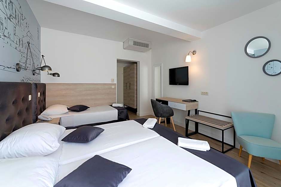 Superb location for beach (approx. 50m away) and many places to eat, nice cafes. Room was a double/twin with balcony that had partial sea view. Facilities in the room were good, always clean and presentable. Breakfast choice OK, but basic. Fruit, cheeses, meat, orange juice, croissants. Fried eggs and omelettes. If you prefer something more substantial and bigger choice, then you can go to a nearby cafe or restaurant. The breakfast was good for the price (included in the booking). Staff were brilliant. Very polite and happy. Particular mention to Barbara and Vid on the Reception desk. They were very helpful, happy and generous with their time and all my questions. The hotel is small with only 25 rooms and very quiet at night as it is located near a pedestrian only area. No vehicle noise at all. This was in Mid April. It may be slightly nosier in the Summer months. It's about 5 minutes walk to nearest bus (number 6) to go to Old Town. This takes about 20 minutes depending on traffic. Just be prepared for a lot of people trying to board with no queue system. Tickets are cheaper in the nearby kiosks.