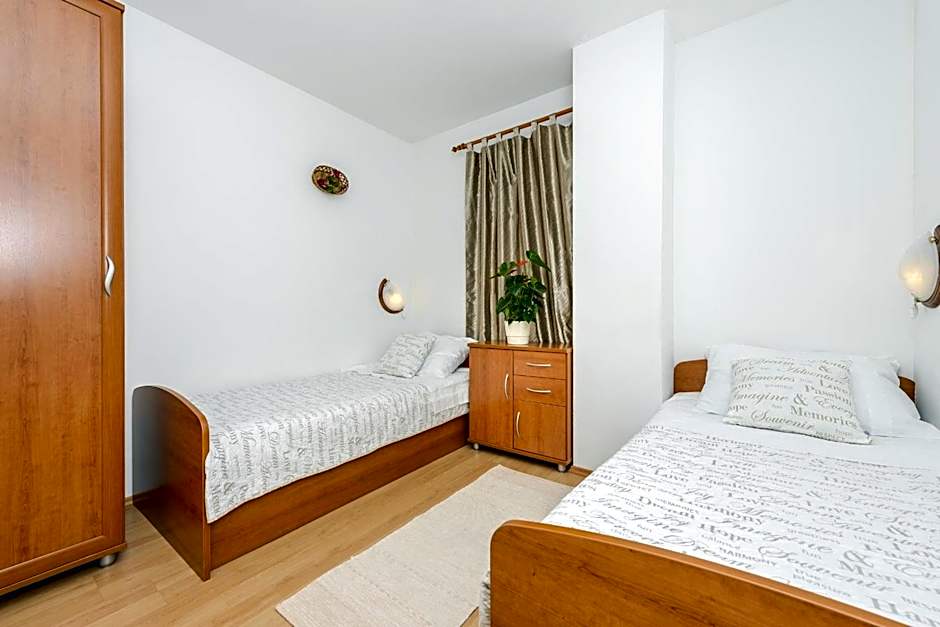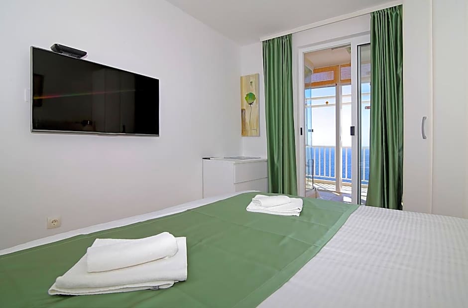 We stayed in the two room apartment (living room with kitchen,,bedroom, 2 bathrooms). We liked how spacious it is, it has two TVs which is great, a well equipped kitchen and a great terrace. It's a short walk to the nearest beach but a ride with bus/taxi is necessary to reach Old Town in high temperatures. It has a great sea view although very quiet. The host was very hospitable.