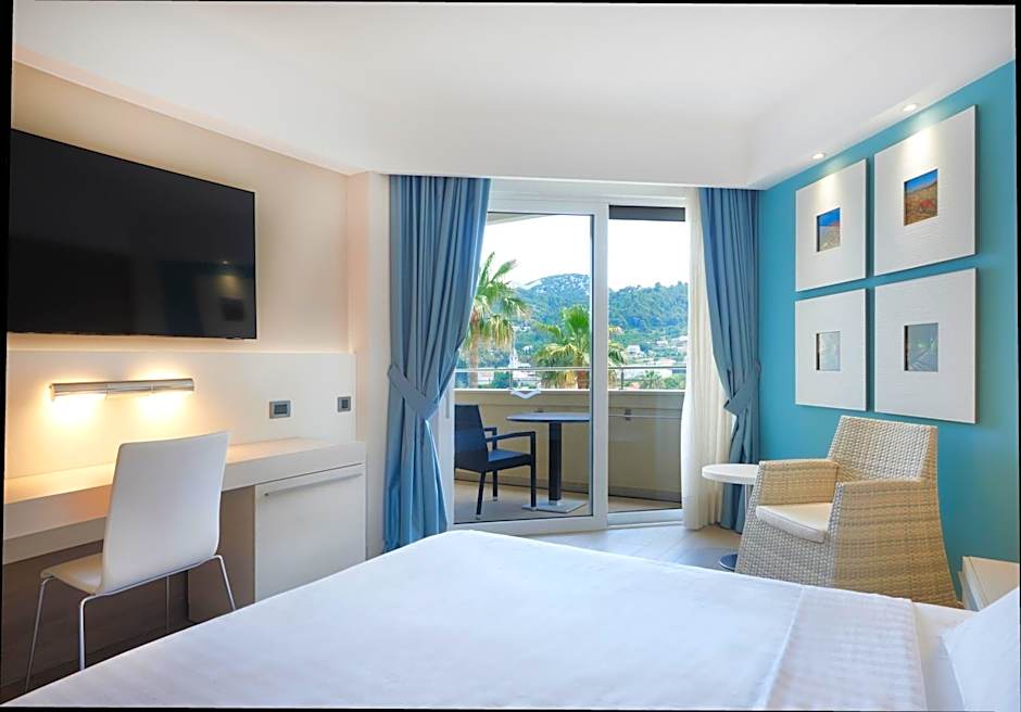SUPERIOR ROOM WITH FRONTAL SEA VIEW is 248 square feet and includes either a king-size bed 150-183 width or 2 single beds 80-130 width plus balcony and desk.