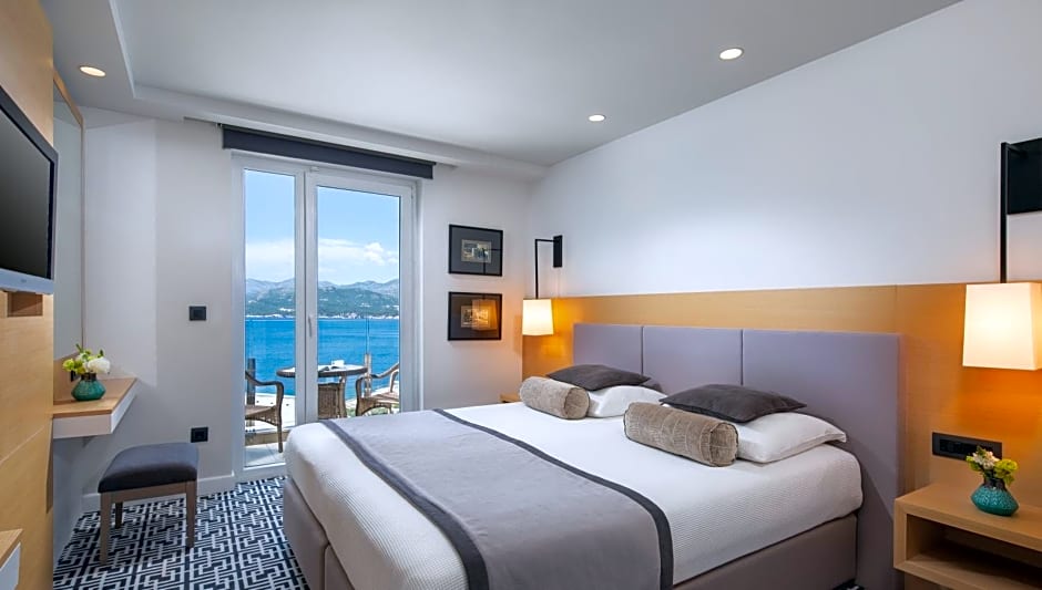This room comes with a large double or two single beds. Air conditioning and satellite LCD TV are available along with a work desk and a mini-bar. Balcony with panoramic views of the Adriatic Sea and nearby islands.