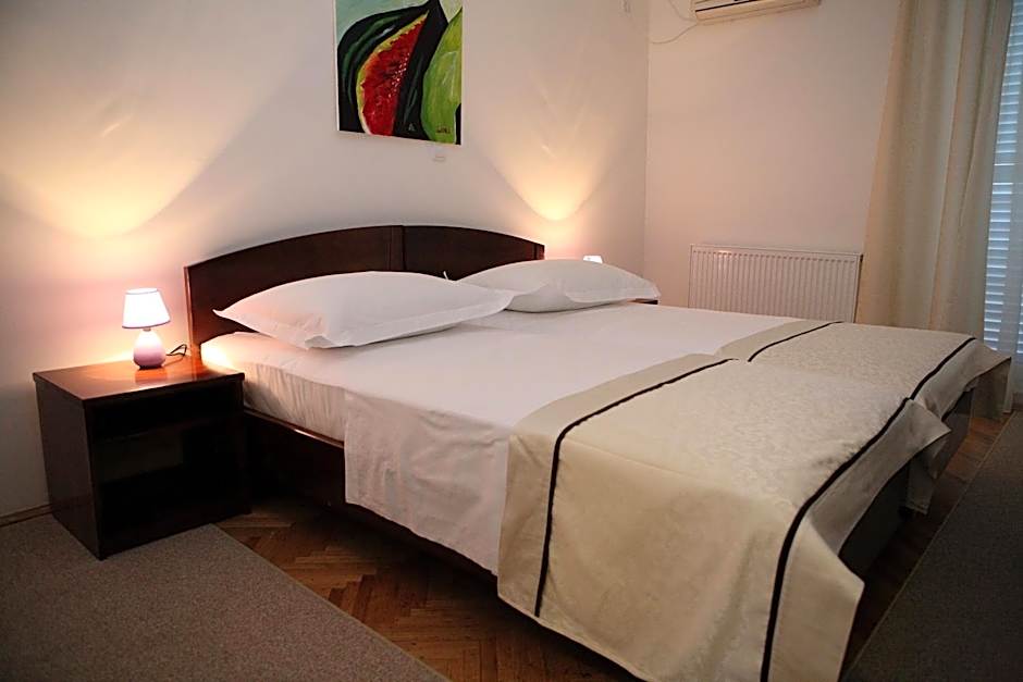 We landed in Split airport and it took about 15 minutes to arrive at the hotel. Because it was nighttime, it took us through narrow roads to reach it. At night the hotel looks like as if it's located in quite a quiet area. First we had been offered a room on the ground floor and I usually don't like ground floors. So I asked the young girl at the reception to change it so she offered us a third floor room with a nicer view to the sea and the garden. The room is very nice, big, clean and comfortable. It has air-conditioning and fridge. We wake up in the morning to see the beautiful beach and sea full of swimming and children. I loved the location. It's active and restaurants and shops nearby. And the beach was really nice. The water is amazing and has some inflatable climbing frame. Yes it a public beach but it's well looked after it and it's just at the door of the hotel. The breakfast was simple but nice. I enjoyed staying there. Split hotels are very expensive, so we choose this one as its price is reasonable and has car park spaces either inside or the road just outside the hotel.