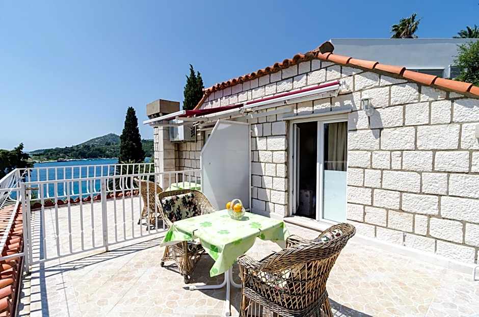 Location is superb, literally on top of the beach and harbour. Views are fantastic. Family-style atmosphere, super relaxed and friendly. Close to an array of restaurants and to the harbour with around the clock ferries to Dubrovnik (much better option than to drive to the city).