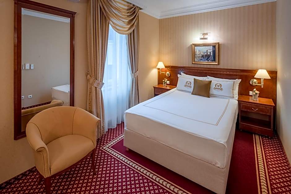 Elegant air-conditioned room featuring a desk, safe, mini-bar and a TV with international programs. The bathroom comes with spa bath or hydro-massage shower.