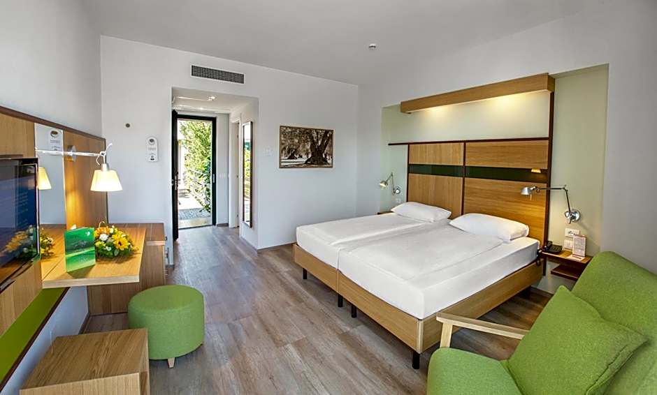 The hotel is very nice, 1 room is a bit too small for 3 adults, the beds were pretty comfortable. Breakfast + dinner are great, there is something for everyone. The hotel is about 30 min walk away from the Poreč city center. Was a plus for me but a minus for my parents.
