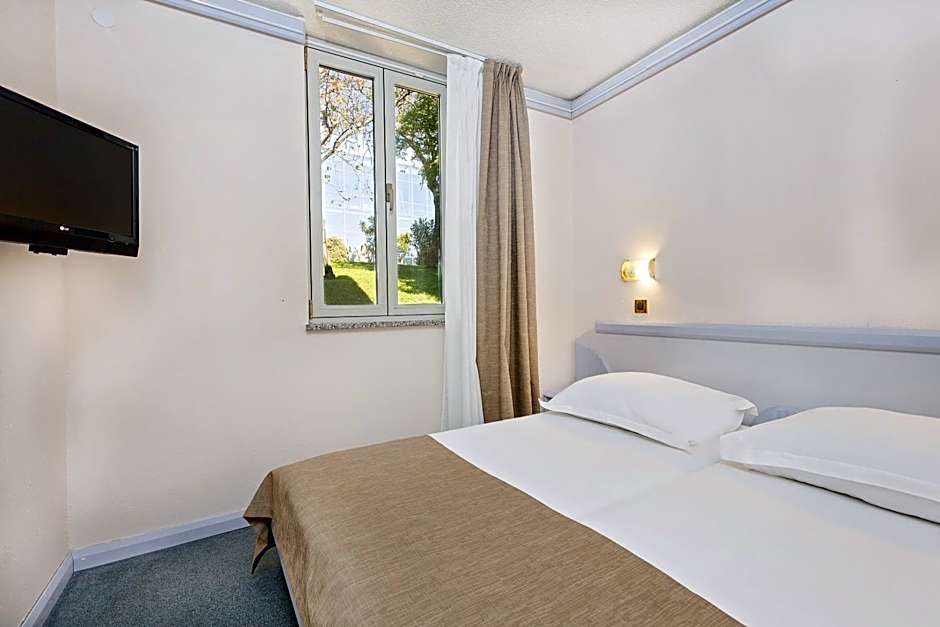 The food was amazing. The staff was very kind and tried their best to keep everything in order. The pool was convenient, clean. The hotel is located quite away from the centre of Porec and there are no regular buses or public transportation. Walking slowly takes you 1 hour to reach Porec through beaches and forests, it's a nice walk. There is a touristic train, quite expensive for what it is, to take you back and forth if you don't want to walk. In the hotel area there is a small supermarket and some food and clothes boothes. All in all we hade a great time. Great place for families. Carry your own towels if you plan on going to the beach or the pool.
