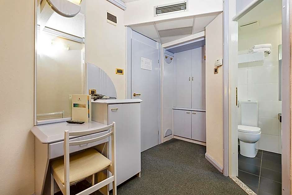 ECONOMY ROOM WITH FRENCH BED PARK SIDE -SINGLE USE is 129 square feet and includes a double bed 131-150 width plus satellite tv and safe.