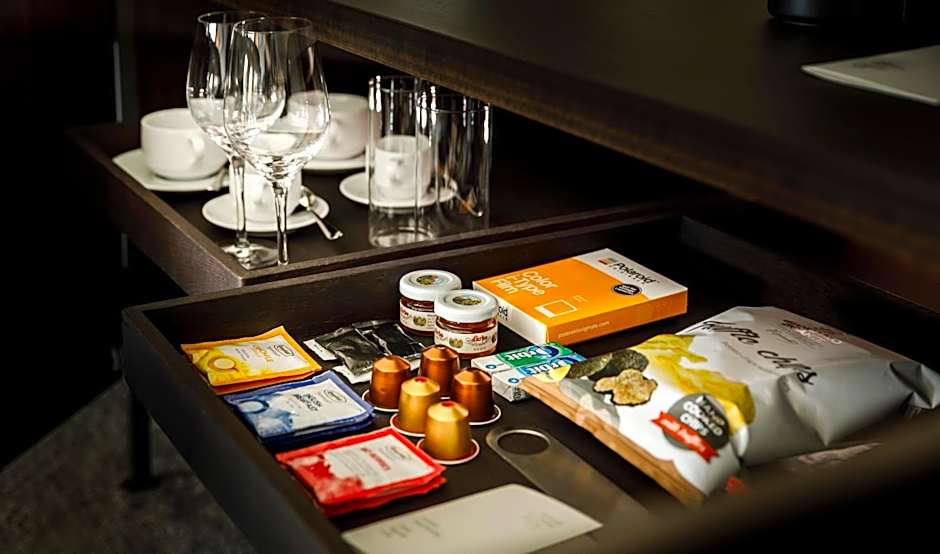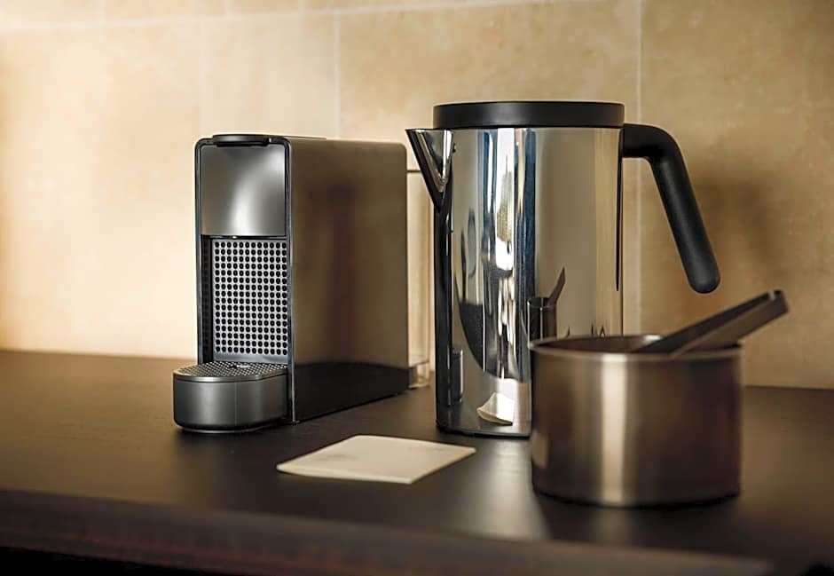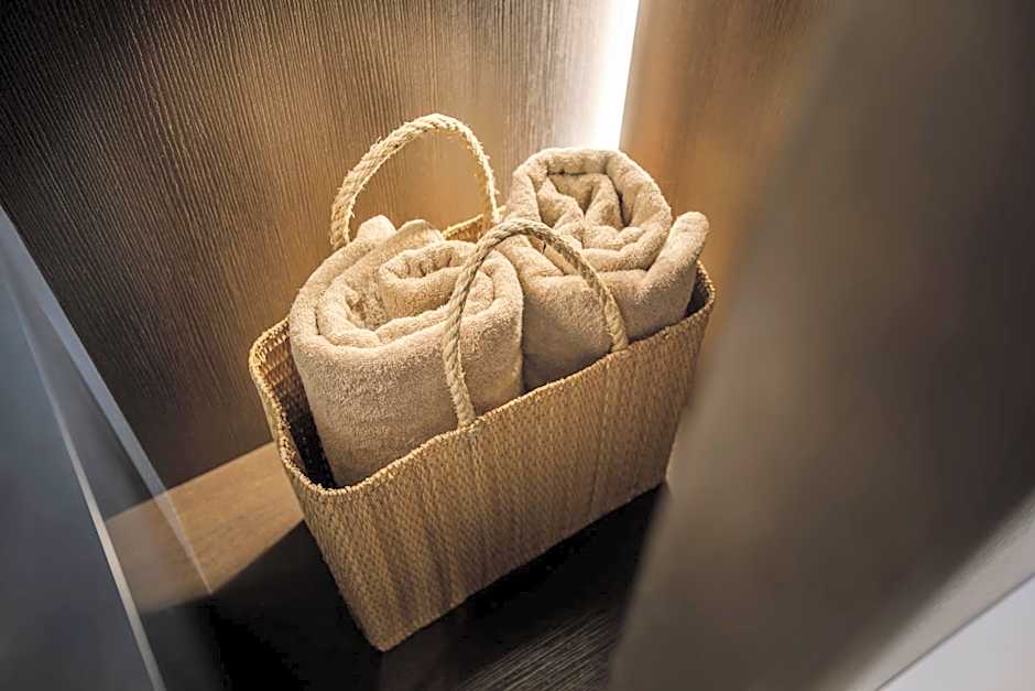 The room features a king-sized bed or two connected twin beds and is inspired by the understated pleasure of the Mediterranean felt everywhere in the hotel – in earth tones, natural materials, and Mediterranean plants on the balcony. The balcony overlooks the green parks surrounding the hotel. The rooms are adapted to people with disabilities.