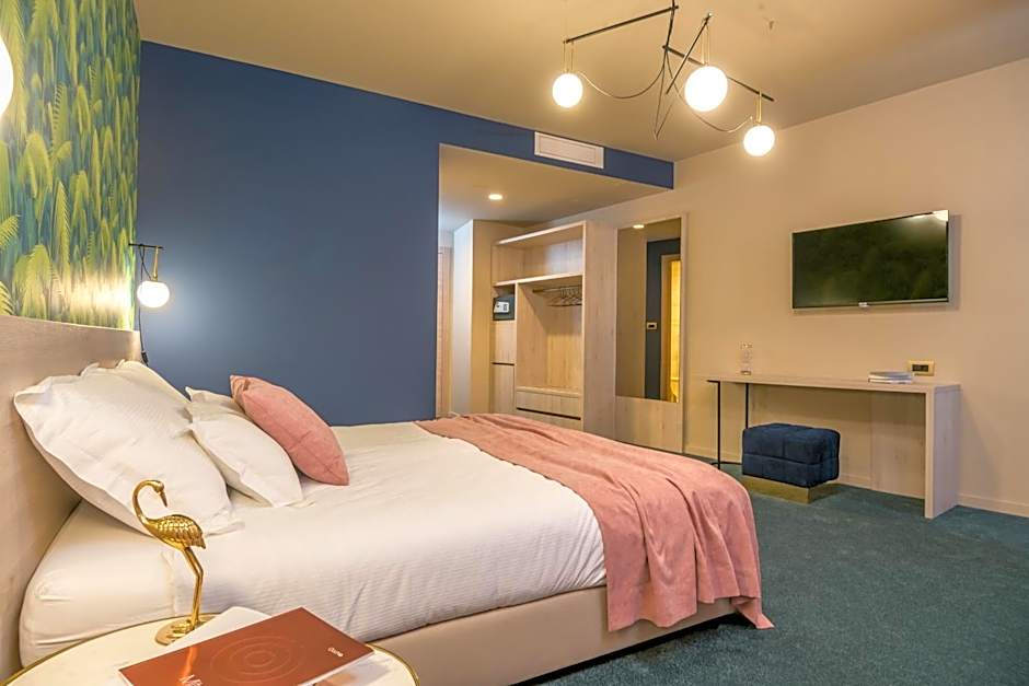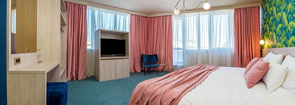 The hotel offers Superior Double or Twin Rooms with a terrace or city view, both of which are non-smoking. These rooms can accommodate 2 adults and 1 child, with beds including a King size and Twin beds. There is also a Superior Double or Twin Room with a terrace Jacuzzi and a Deluxe Double or Twin Room with a spa bath, both non-smoking and with the same occupancy and bed options. The hotel also has a Deluxe Apartment that can accommodate 4 adults and 2 children, with a sofa bed and a King size bed.