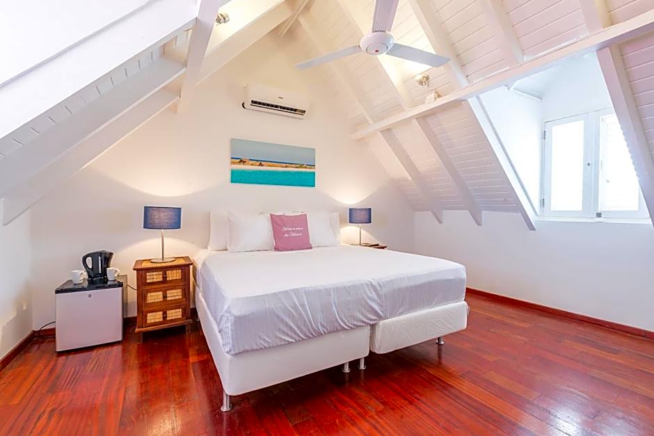 Rooms at the Lodge on the first floor have access to the shared gallery. The rooms on the ground floor have a private terrace overlooking the pool amid the tropical garden. The Merchant 's Villa are 4 standard rooms on the lively city side.