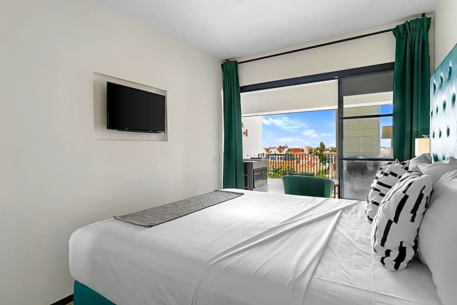 Modern, air-conditioned studio with 1 double bed, a seating area, an LCD TV with 42 international channels and a kitchenette equipped with a microwave, kettle and fridge. It also includes free Wi-Fi. Traditionally on the Island: the hotel has hot water in the bathrooms.