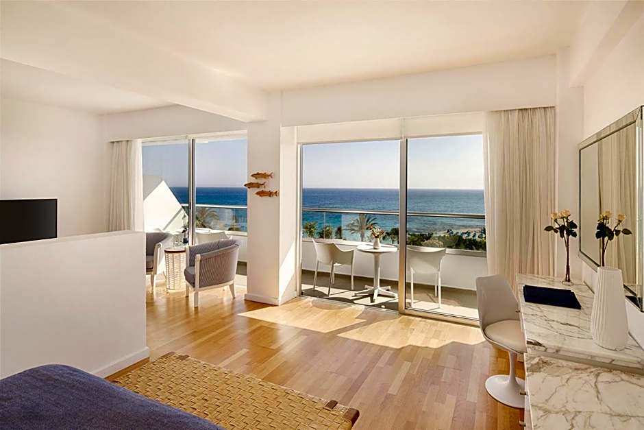 Features a private balcony with panoramic views of the Mediterranean Sea.
