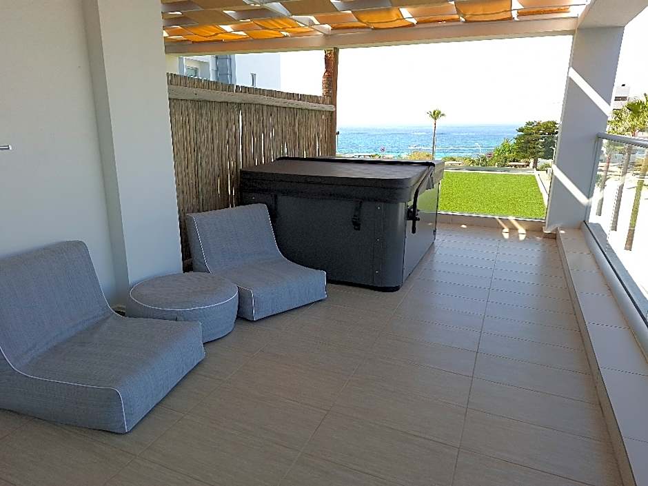 Consists of 2 separate bedrooms with private bathrooms, a sitting/dining room area, and a kitchenette. The large terrace features a hot tub and offers a view of the pool and the Mediterranean Sea. In addition, the following are provided in the room upon arrival: - One small fruit basket - Bottle of wine - One bottle of water - Flowers - Canapés Please note that the rate is based on 2 guests. Maximum occupancy is 4 adults and 2 children (see Hotel Policies). For extra beds a foldaway bed or a sofa bed is used. All children from 0 - 2 years are charged EUR 25 per night. This charge is applicable whether a crib is required or not.