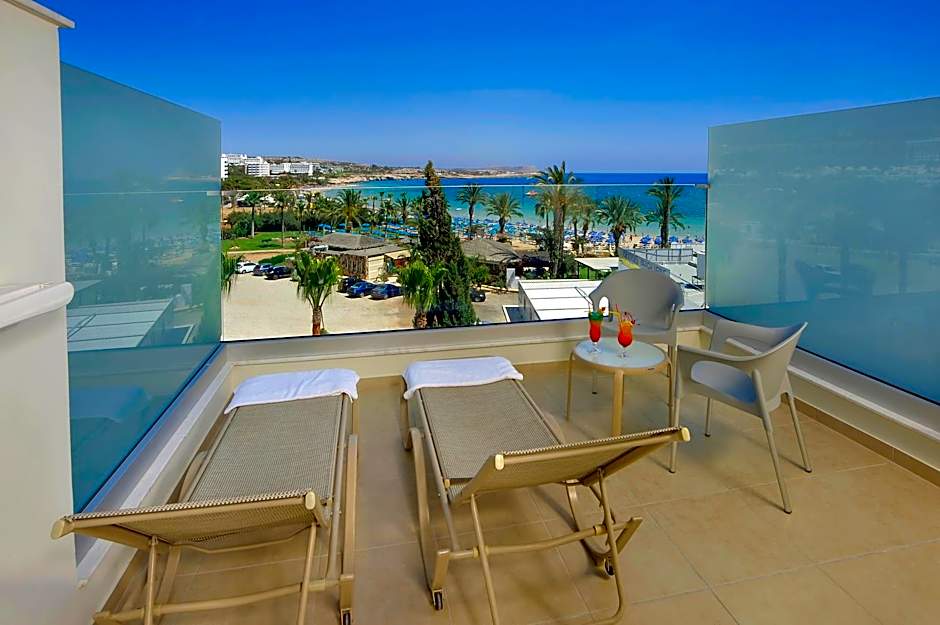 Guest rooms feature air conditioning, balconies, and views—whether garden or sea—offering a breezy base after days on the sand. Practical touches include a 24-hour front desk, non-smoking rooms, an elevator, and free toiletries, along with private parking for added convenience. With the beach at the doorstep and Ayia Napa’s lively charm within reach, this seaside stay blends coastal bliss with easy, everyday comforts.