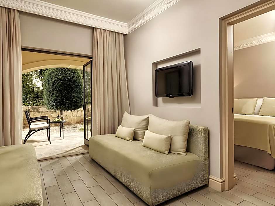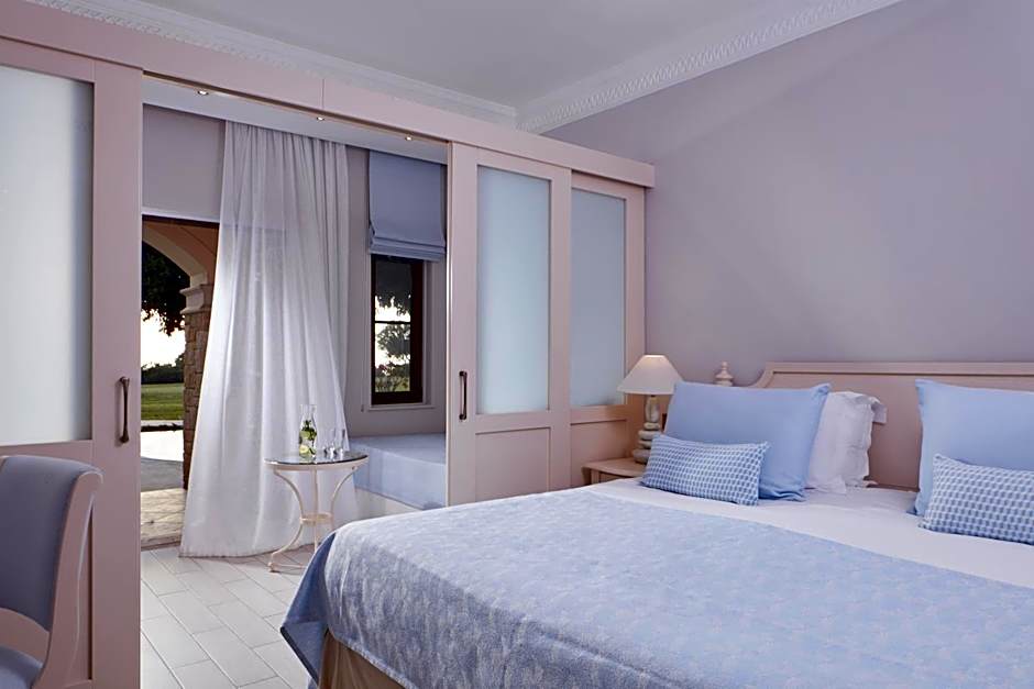 Offering views over the golf course and the sea from its balcony or terrace, this family room has a spacious bathroom with separate walk in shower and bathtub, bathrobes and slippers. It also includes a mini bar, in-room safe, individually controlled air conditioning, satellite TV and pay per view movies, complimentary tea and coffee facilities and free WiFi.