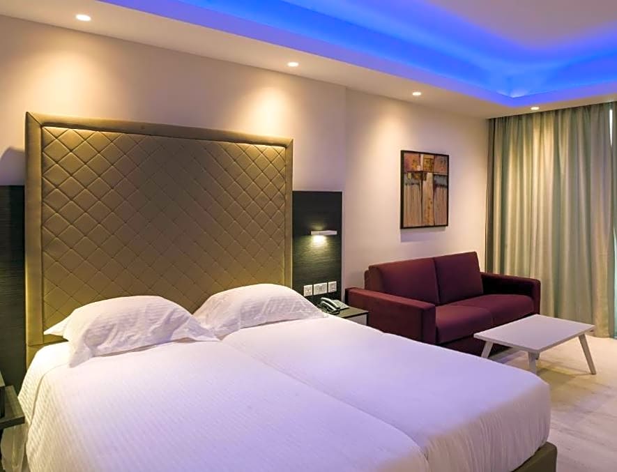 Parking and shuttle services are available for an extra charge, and payment options include cash plus Discover, American Express, Visa, Diners Club, JCB, Mastercard, Maestro, and UnionPay. The address is 9, Gregoriou Afxentiou Street in Larnaca, Cyprus, about from the city center, placing guests within easy reach of the town's sights and neighborhoods.