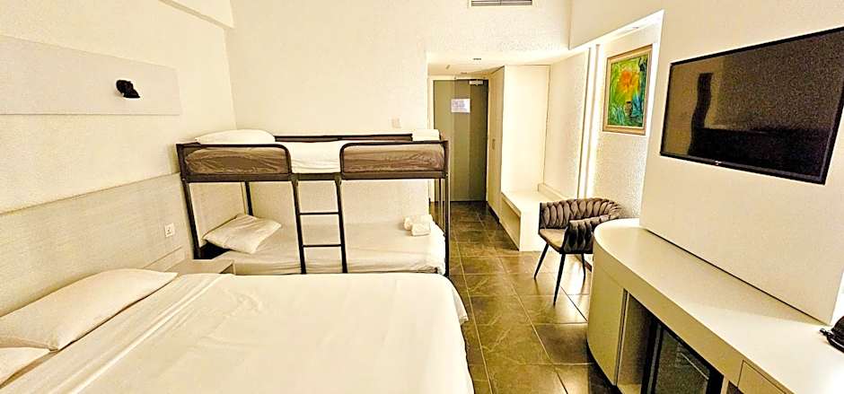 The family room provides a seating area, a wardrobe, as well as a private bathroom boasting a shower and a hairdryer. The spacious air-conditioned family room features a flat-screen TV with satellite channels, soundproof walls, a mini-bar, a tea and coffee maker as well as garden views. The unit has 3 beds.
