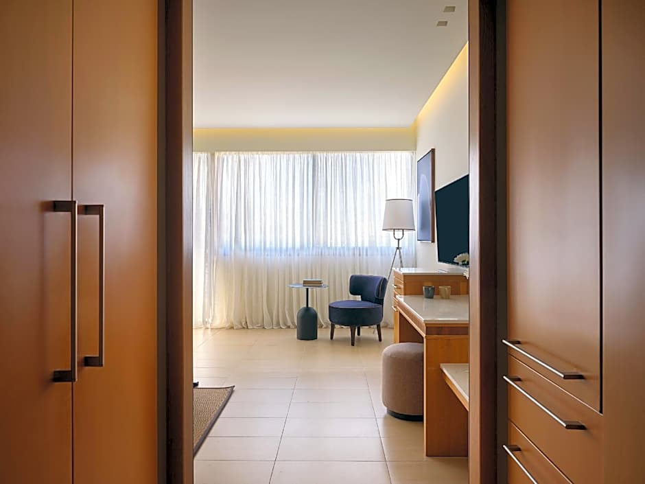 This spacious suite is consisted of of 1 living room, 1 separate bedroom and 1 bathroom with a bath or a shower and free toiletries. The air-conditioned suite offers a flat-screen TV with satellite channels, soundproof walls, a tea and coffee maker, a safe deposit box as well as pool views. The unit offers 1 bed.