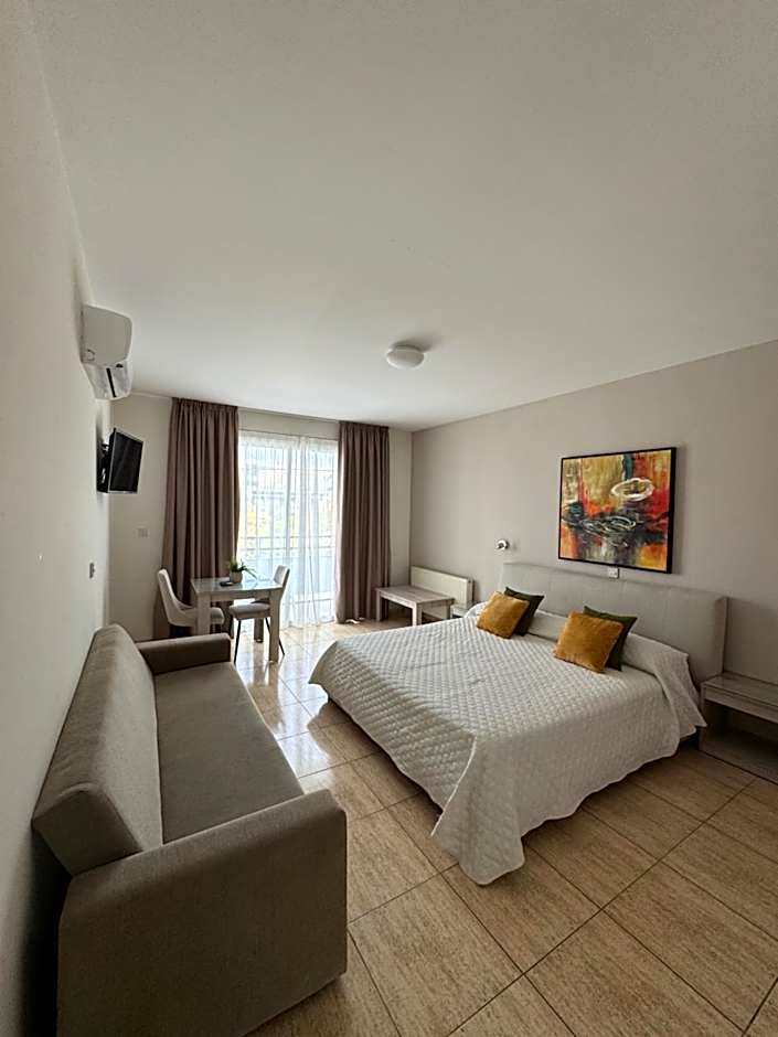 Modernly decorated studio with double or king size, air conditioning and a well-equipped kitchenette with fridge and microwave. It also includes: -a flat screen TV -a bathroom with bath tub -free WiFi.