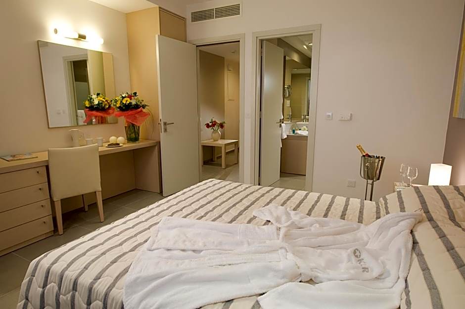 This package includes free airport transfer from and to Paphos Airport. Features contemporary décor in earthy tones and includes a satellite TV. Please note that this room type can accommodate either 2 adults or 2 adults and 1 child up to 12 years old. Guests are kindly requested to sent their flight details at least 2 days in advance, in order for the hotel to arrange the pick-up. Contact details can be found on the booking confirmation.