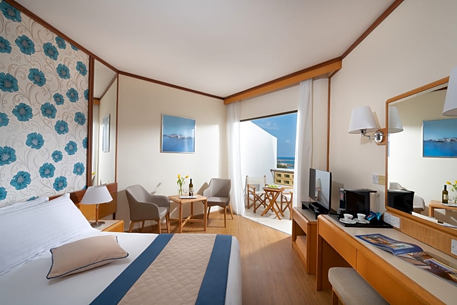 In addition to the leisure amenities, guests can also dine at the hotel's several on-site restaurants. These include Pygmalion Restaurant, Aphrodite Restaurant, Oasis Restaurant, Evelina Restaurant, and Olive Tree Restaurant, offering a range of international, traditional, Mediterranean, and Italian cuisines.